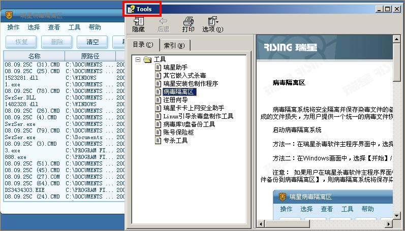 另外,病毒隔离区的帮助文件左上角也显示为英文!