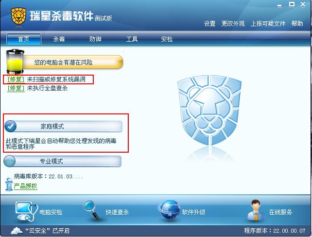 设置:文件监控关闭。系统加固,木马行为防御等开启,且处于默认设置。