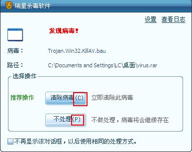 “清除病毒”“不处理”按钮建议支持键盘操作,方便用户使用。