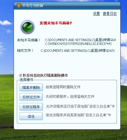 引擎查杀病毒包时,点击“不作处理”,结果卡死。发生错误,监控退出。