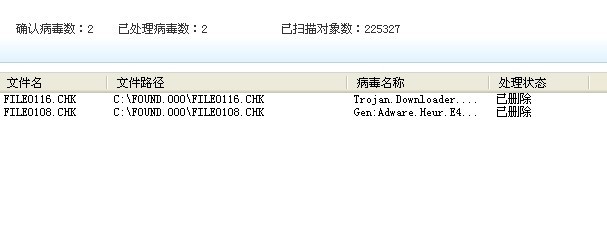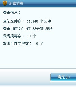 再后来我又一次打开了瑞星,居然可以连接上一次继续杀毒,等到查杀完毕了之后这就是查杀的结果