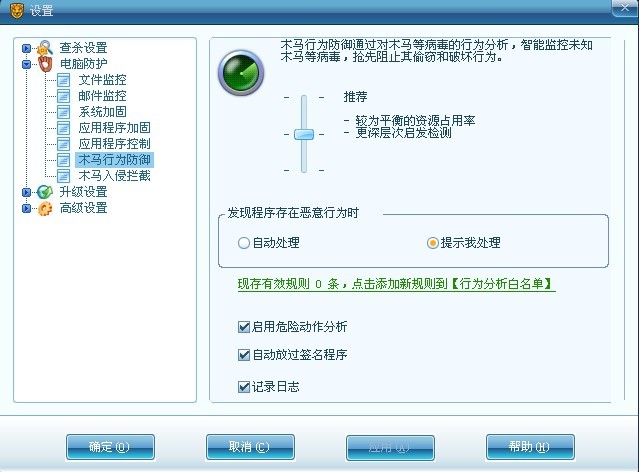 在瑞星设置里把木马行为防御设置为提示我处理!然后再提示时!把木马行为添加到“行为分析白名单里”!如图