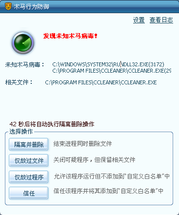 将木马行为防御调到最高后,运行CCleaner的时候误报