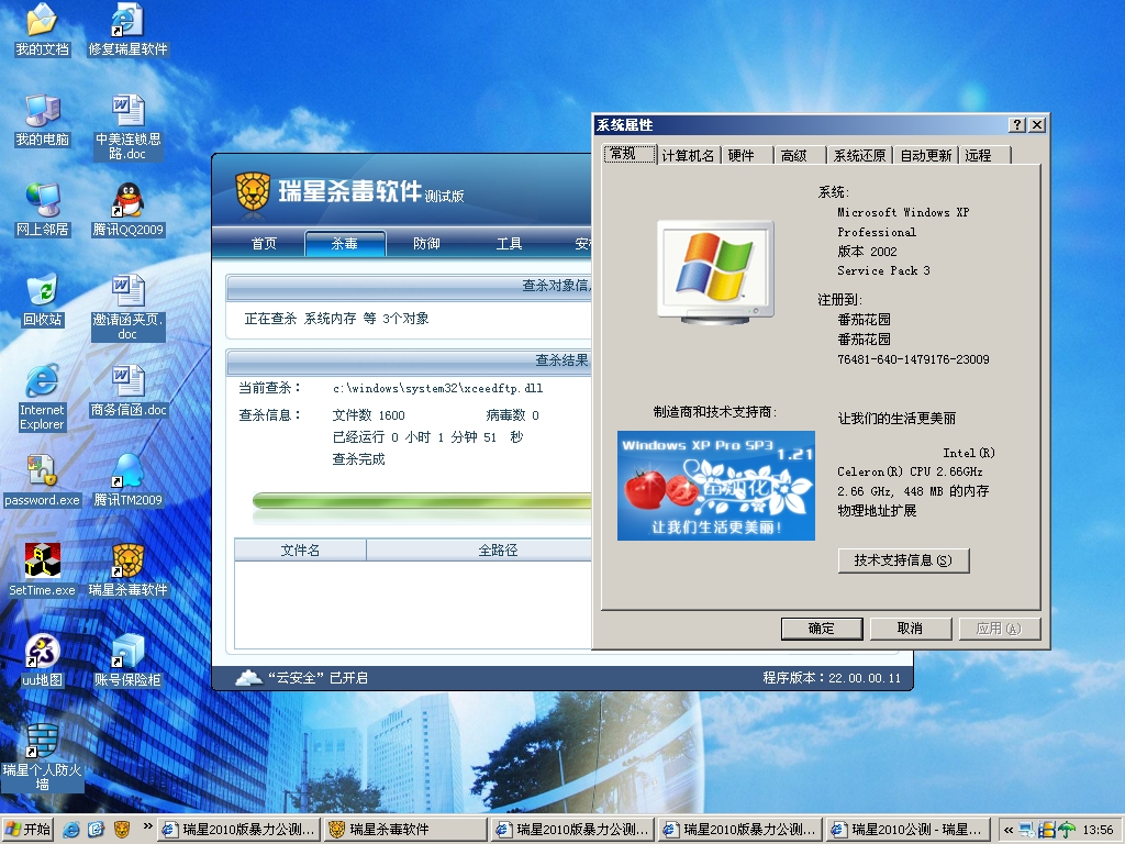赛扬2.66 512内存 快速查杀 1600个文件 用时1分51秒