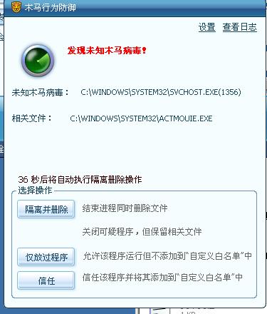 请先全盘杀毒,如果没有提示病毒,请搜索C:\WINDOWS\system32\actmouie.exe 文件,上报。上报网站: