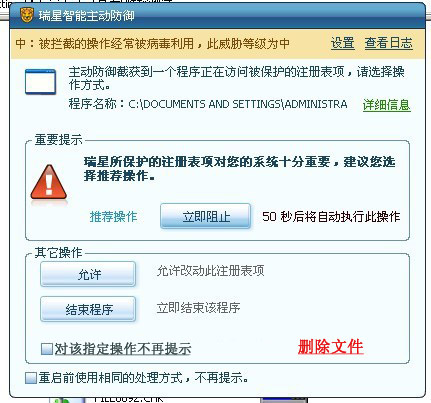 一个程序,用户并不认为他是可信任的程序,但是这个程序会执行一些“危险”或者是“流氓”等瑞星会拦截的操作,但用户的确又需要使用这个程序,又不能添加到信任名单,是不是应该有一个规则存储的功能?