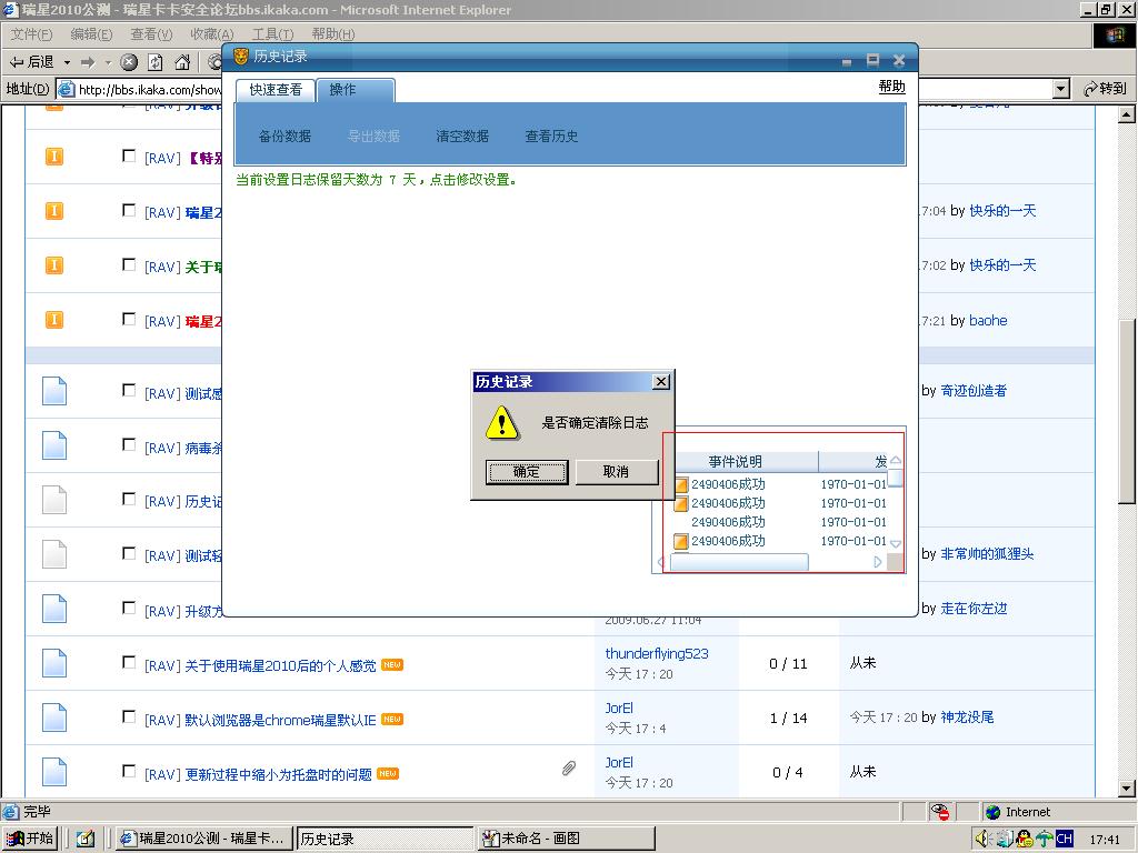 在WIN2000下调出日志记录,然后点击清除记录,日志窗口失去响应,大约5秒过后,出现提示,但是问题出来了,看图吧。