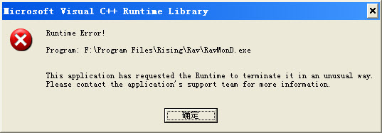 有些病毒会专门给瑞星制造Runtime Error,但是此时千万不能点“确定”