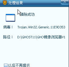 在瑞星2010版杀毒软件扫描病毒的时候,将“GHO镜像浏览器”错报为病毒文件并将删除,如图2、3