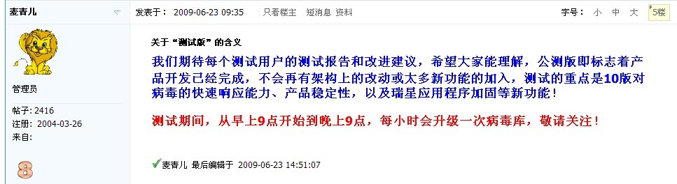 瑞星工程师18 最后编辑于 2009-07-11 09:43:04