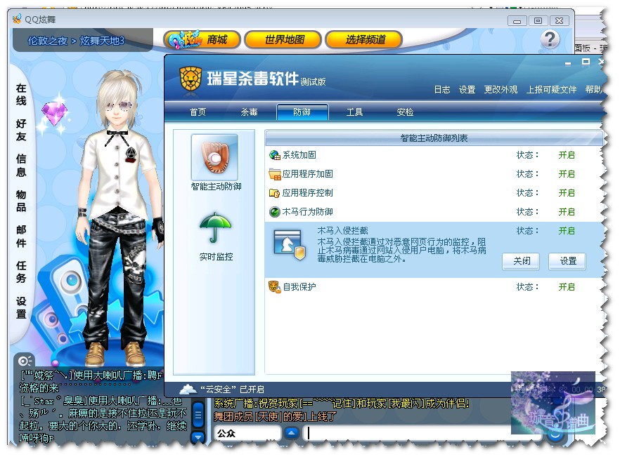自从安装瑞星2010测试版之后,QQ炫舞突然出现问题,只要开着监控,QQ炫舞就会报告模块出错,但是把监控关闭后就好了。这是怎么回事?