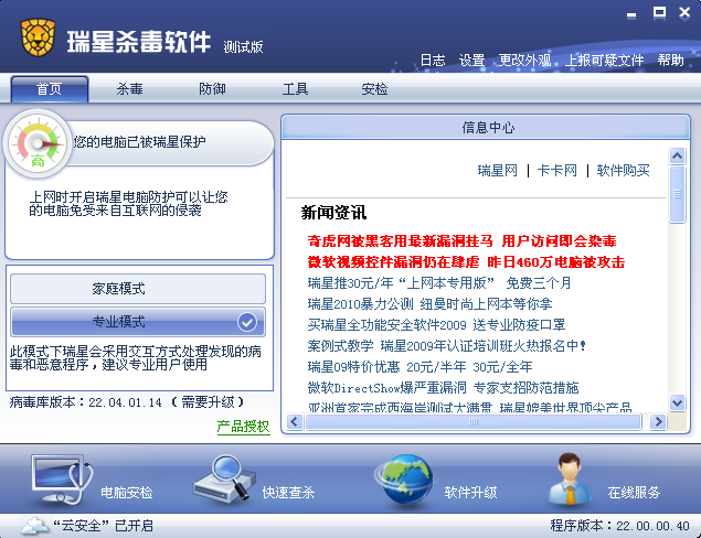 瑞星2010已经更新到22.00.00.40了。咋还没解决这个问题?