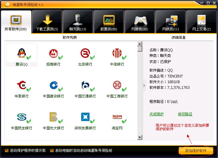 版的时候只能保护瑞星所规定的几个软件,后来许多用户都建议瑞星加入能手动添加所要保护的软件,瑞星在