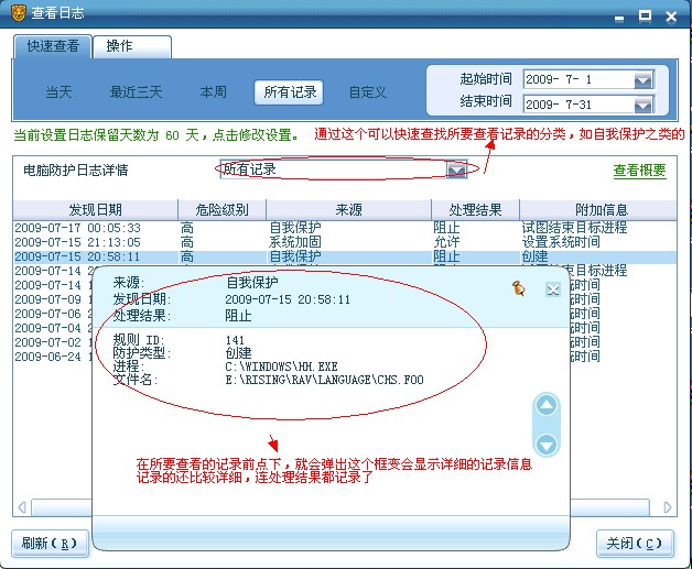 版日志记录记录的很详细,不仅记录了路径连主动防御最终处理结果也记录上了,方便用户查看