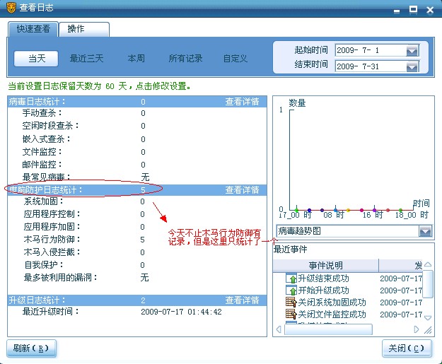 版的时候记录的不是很详细,如主动防御只记录路径之类的,并没有将用户主动防御最终处理结果记录上,而