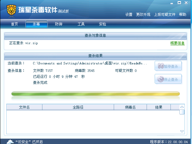 瑞星2009版查杀引擎测试