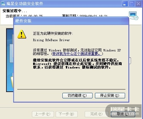 [RAV] 瑞星2010安装过程与windows xp发生冲突