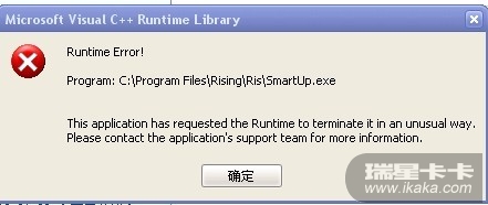 楼主可以尝试卸载了瑞星软件,更换路径重新安装,查看问题是否解决