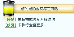杀毒软件的安全风险级别 中的系统漏洞扫描,的判断标准竟然是否安装卡卡助手,个人认为不妥,首先卡卡助手的漏洞补丁其实更新好落后于微软很多天,其次很多"安装补丁没有困难"系统其实基本上不会用第三方软件来更新系统补丁的.所以个人认为这点瑞星有一些偏颇...