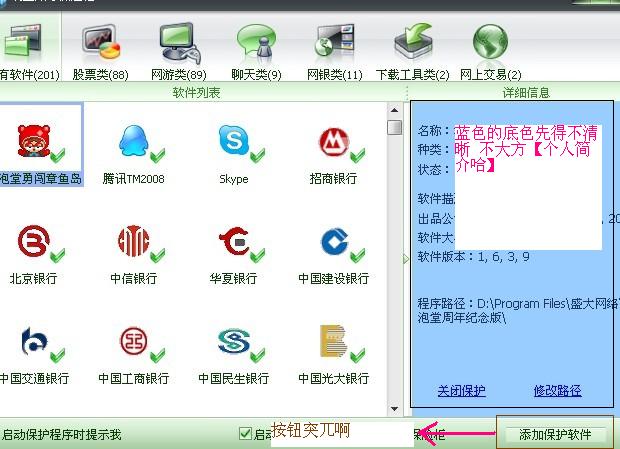 1.保险柜的界面 【添加保护按钮】这个不好看 就像PS贴上去的一样 另外 详细信息的底色为蓝色 显得粗糙