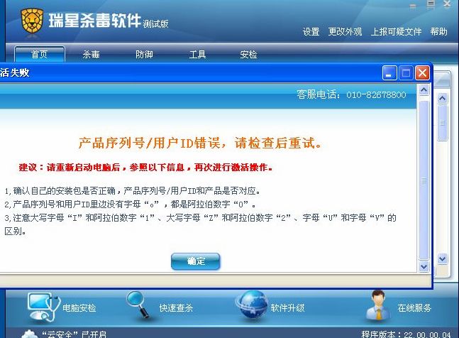 运行杀毒软件时发现病毒库不是最新,想更新下,结果...发现提示序列号错误,这可是今天刚拿序列号呀,难道被忽悠了?