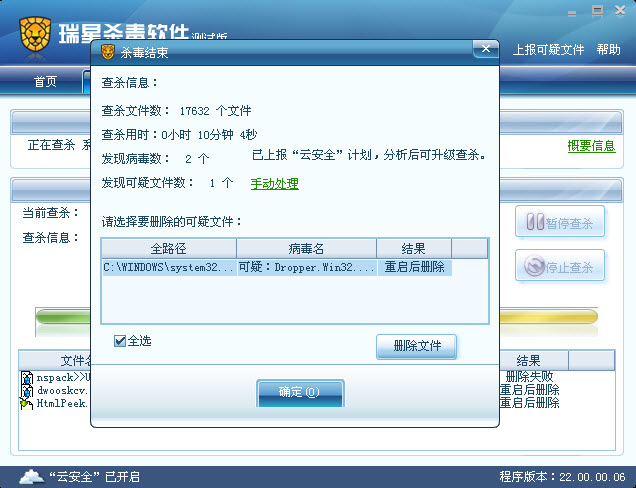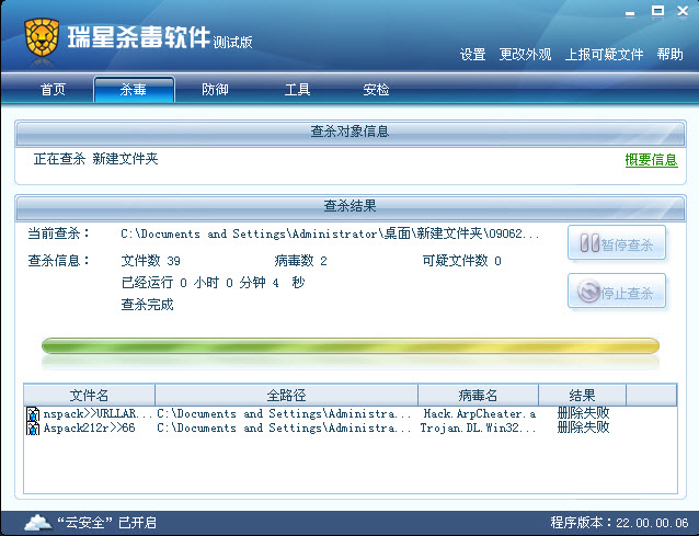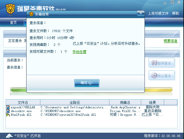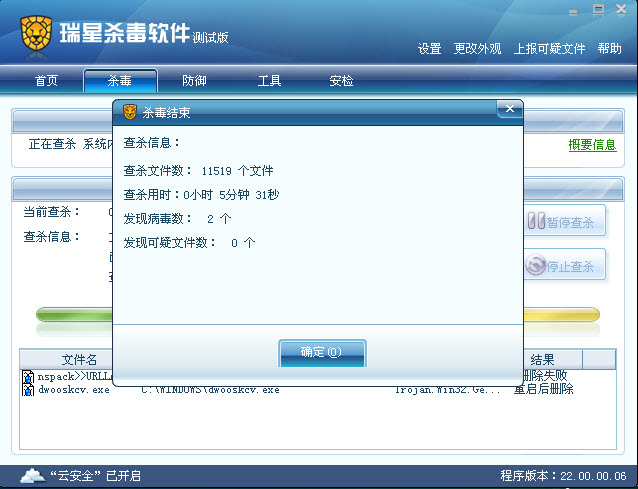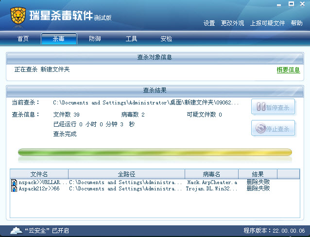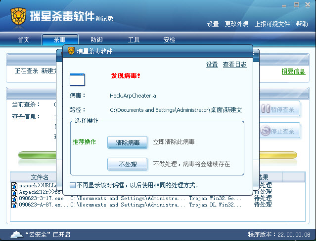 测试病毒包,先在瑞星里面设置(发现病毒直接删除)。因为有很多病毒是感染性的,瑞星能解壳杀掉但是源文件会留着。。所以你这样统计就可能不精准。。