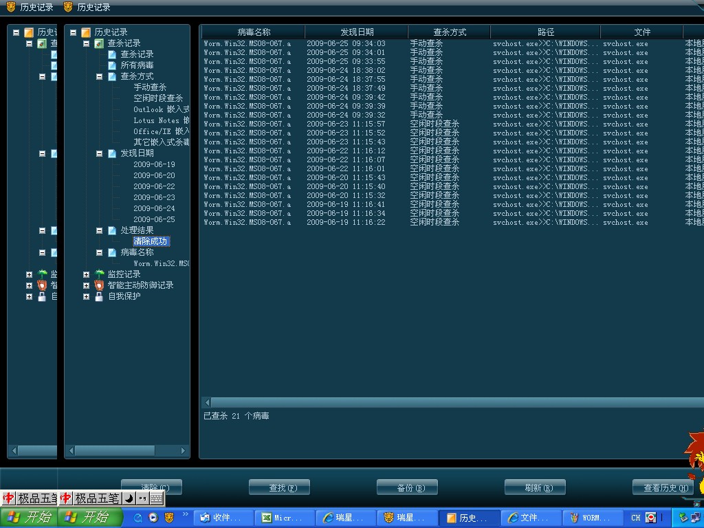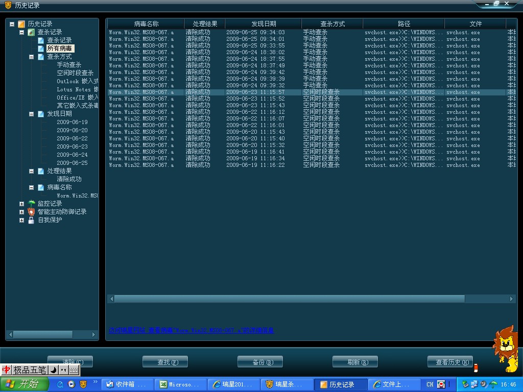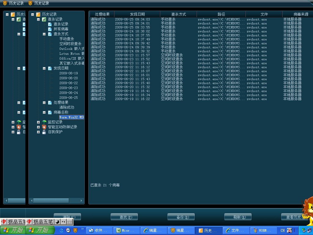 该病毒从2009年3月份到现在一直存在我的电脑里面,每次用瑞星杀毒软件查杀时。均提示查杀成功,当天查杀确定提示没有。但第二天病毒又不知道怎么冒了出来,