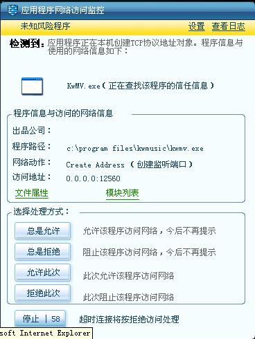 瑞星防火墙有个信任程序智能识别.今天从官方下载了一个酷我音乐盒.开启时提示联网.