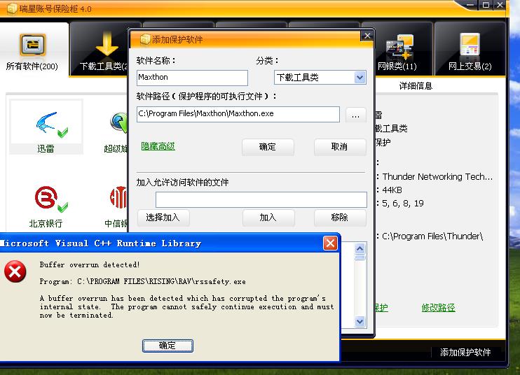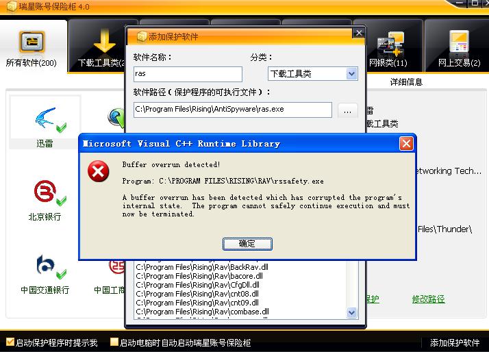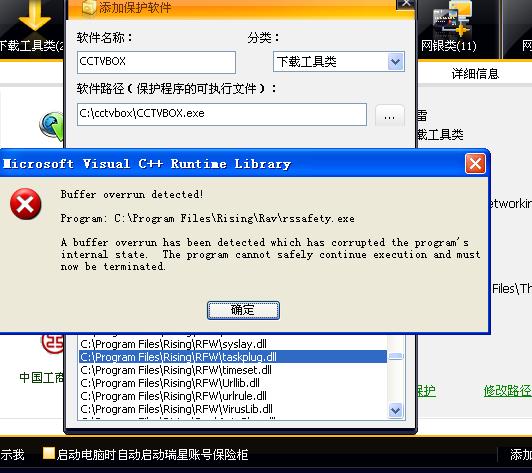 貌似只要一添加瑞星自己的模块就出现错误