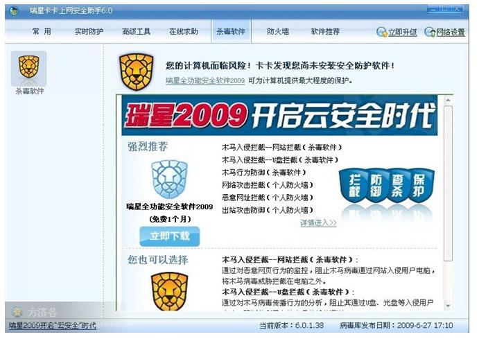 瑞星杀毒软件2010测试版,卡卡助手不能识别。