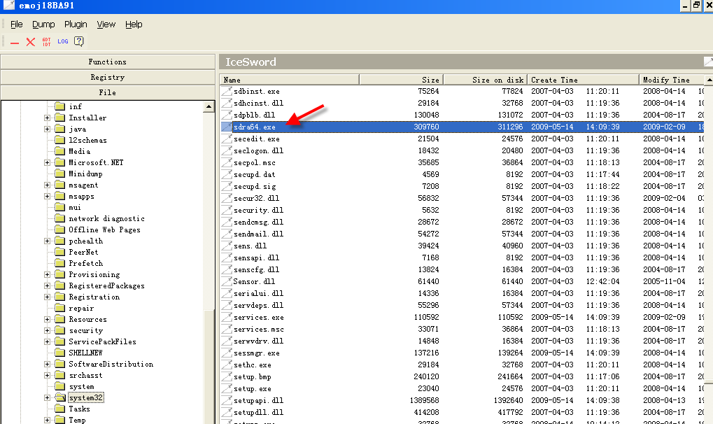 3、尽管瑞星2010“危险动作分析”拦截了,但病毒文件sdra64.exe已经进入系统。