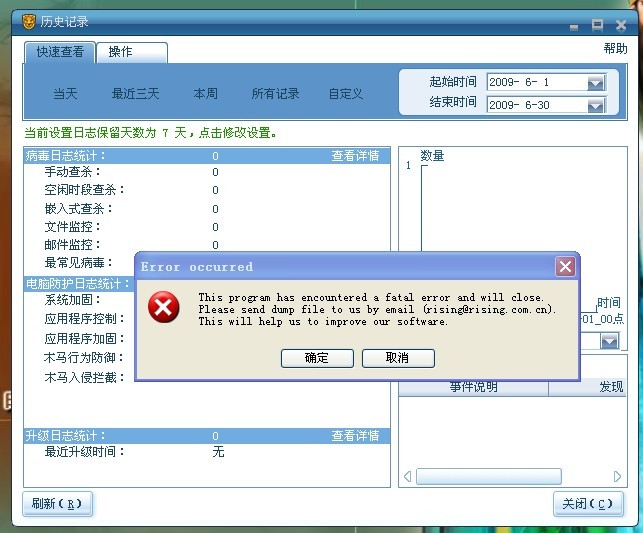瑞星杀毒软件和防火墙升级到22.00.00.18后,查看所有记录时出现上述的问题。
