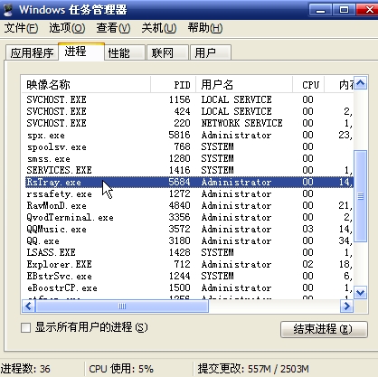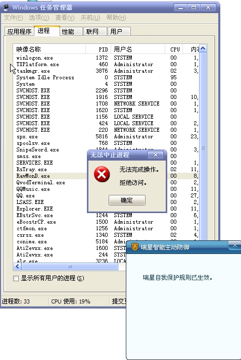在点结束选中的进程之后,瑞星杀毒软件光荣滴挂了......