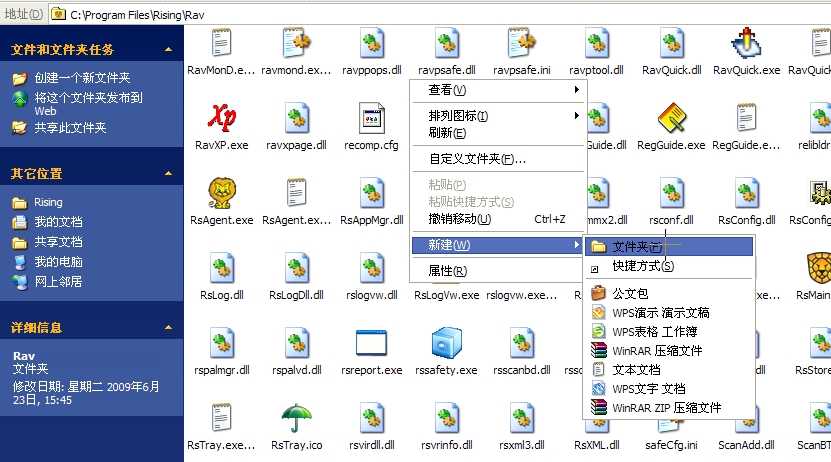 不用多说,右键——新建——文件夹,结果,失败瑞星报警!