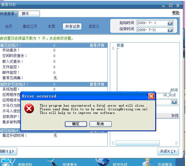 要看所有记录,跳出来瑞星报错(是瑞星自己报错)的对话框如图
