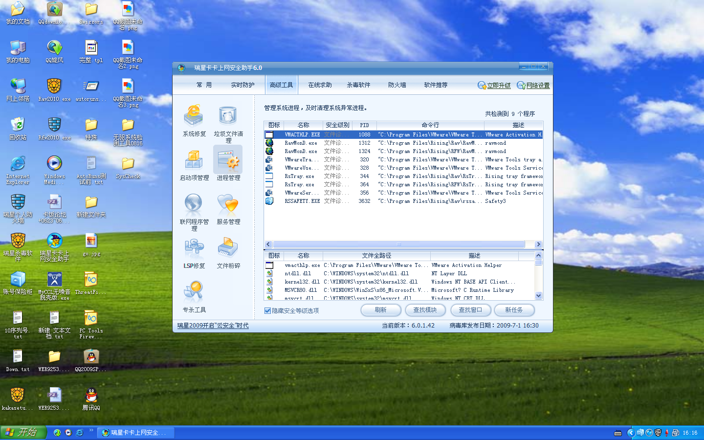 在卡卡的云认证这一项。瑞星10的监控等都没有被识别为安全希望改进一下