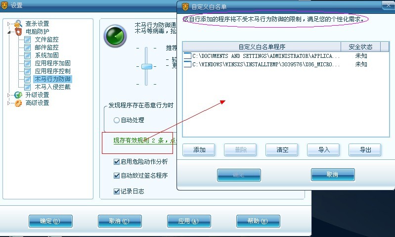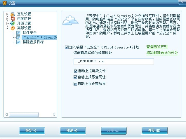 在对应的相关设置中比09要清晰明了 09中那个在查杀设置总界面出现的 [潜入杀毒设置]也终于改地方了,不错