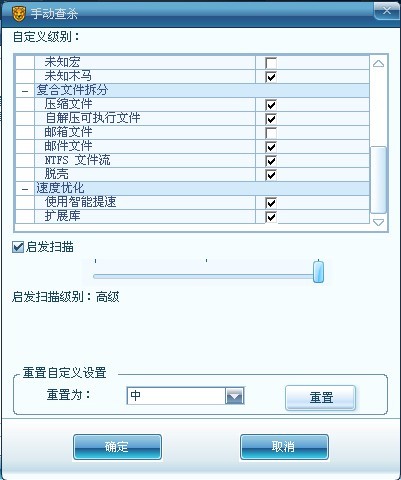 【ps自定义级别的设置见1.手动查杀中的说明 一下所有类似自定义均见1】