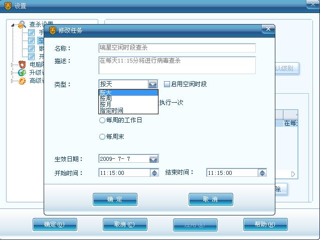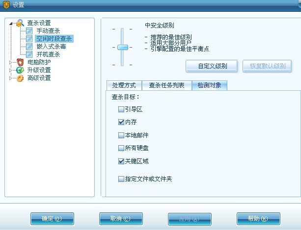 2.空闲时段查杀10版本的空闲时段查杀的设置相比09要人性,要合理