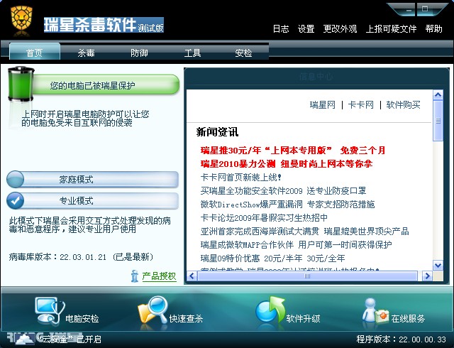 瑞星杀毒软件2010测试版新皮肤其实已经出来了哦!
