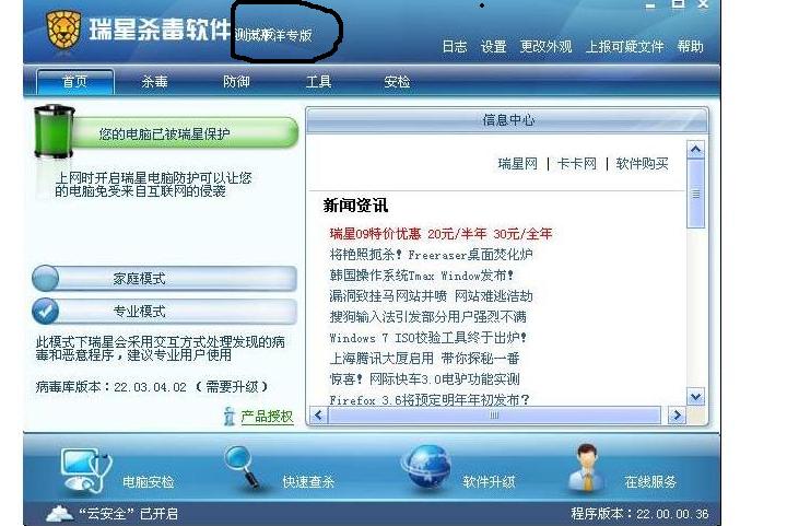 我的瑞星是从2009直接升到2010版的。以前是从太平洋下的,现在升级后还有“太平洋专版”字样,但和“测试版”的字发生重叠。