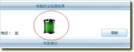 红圈中的动态图标,点刷新后即正在检查安全性时,这个图是一闪一闪的动,里面的“液体”也由红到绿,由矮到高地闪动。