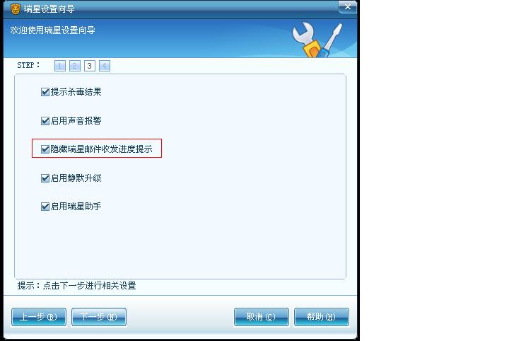 瑞星杀软重装后,弹出的设置向导,在第三步中,会有