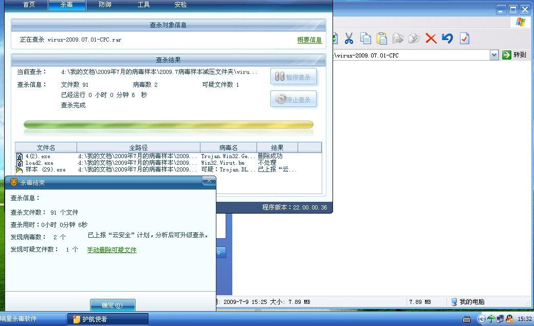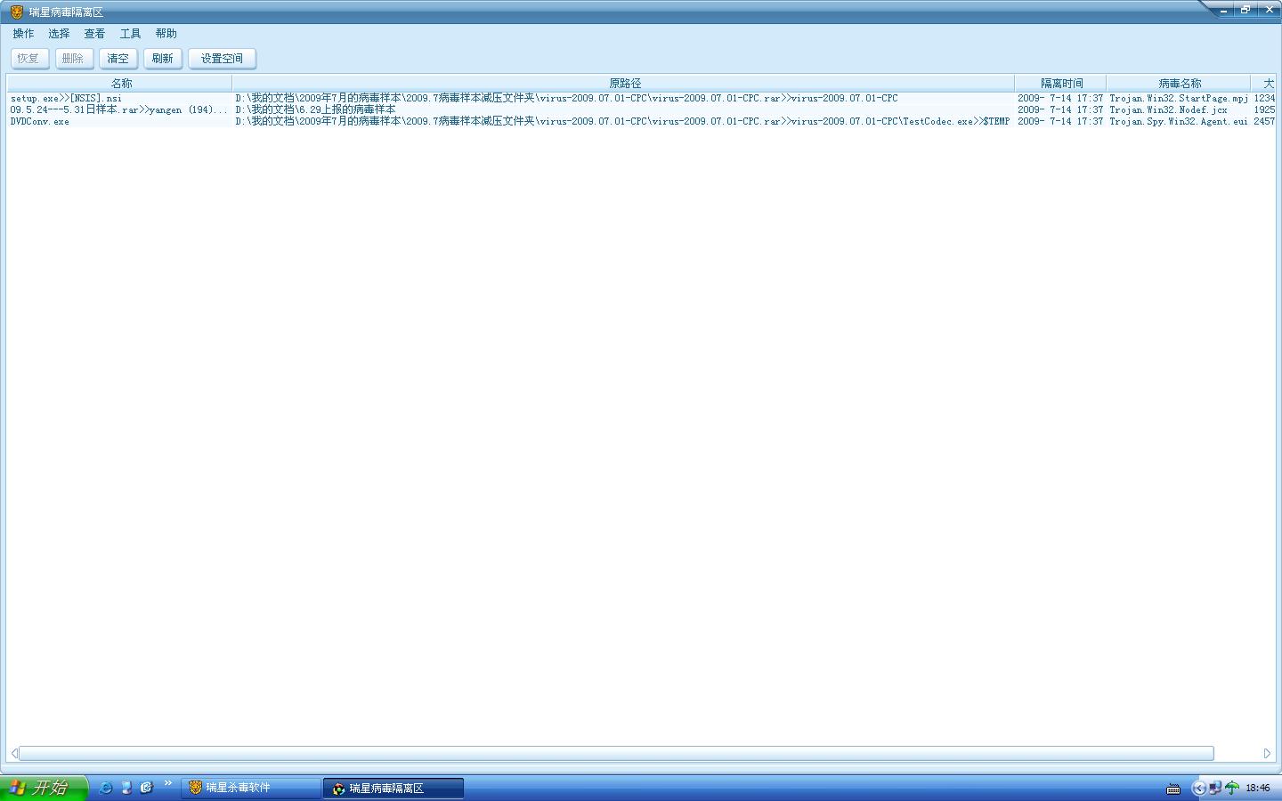 7月14日瑞星2009查杀了2010没查杀到的病毒.JPG