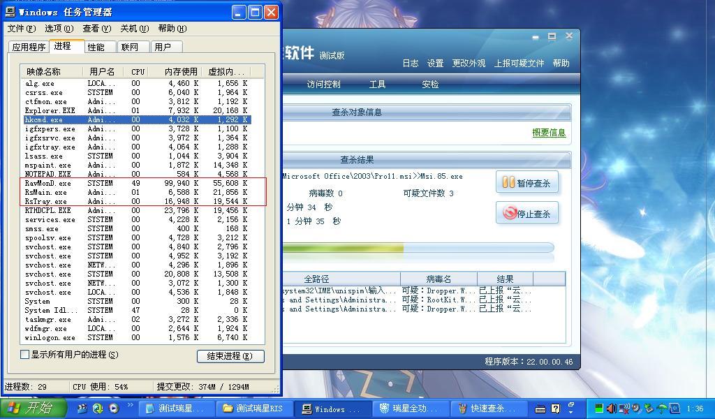 文件瑞星RIS2010在1分三秒就查杀完成了。