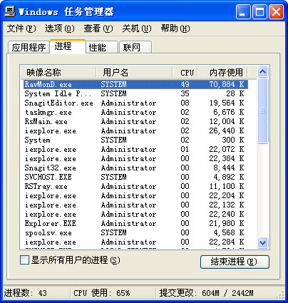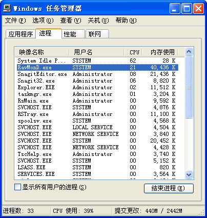 第二阶段测试的主题是瑞星全功能版在低配置电脑上的使用,所以本帖主要测试瑞星全功能版的三种安全级别对CPU的占用情况。