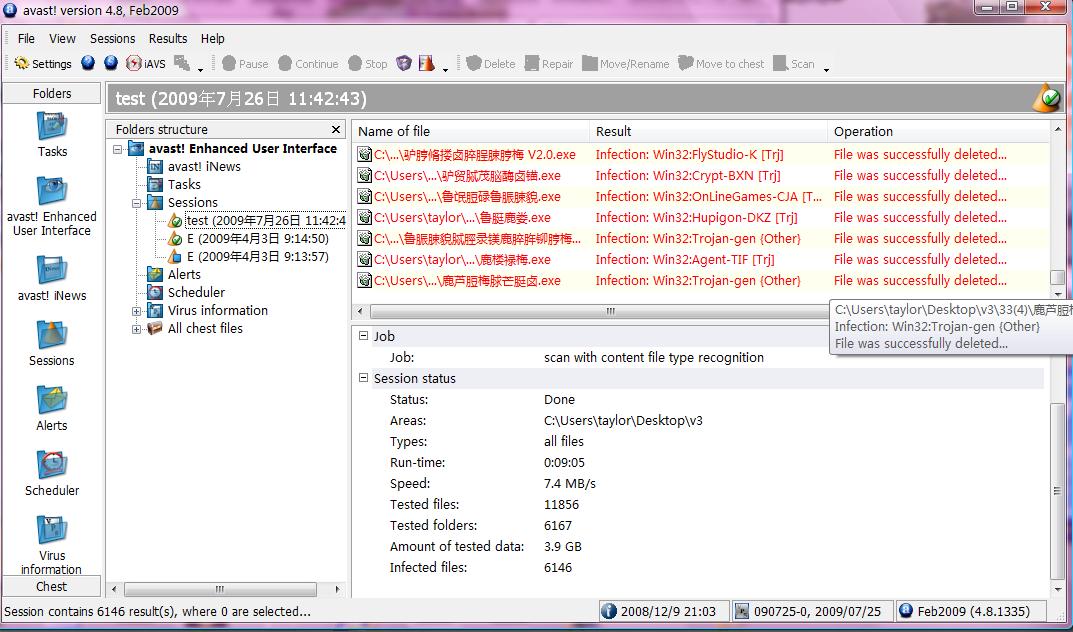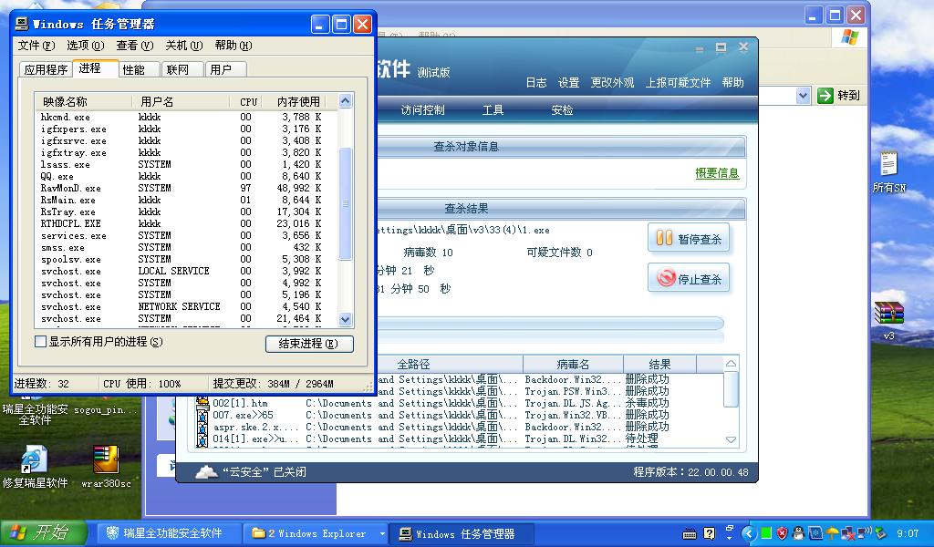 到此这个测试接近尾声了,因为安装avast!的机器配置高一些 就不贴资源占用了,实际上资源很节约。但是avast!扫描时间仅为瑞星的一个零头,无论再大的配置差距也是很说明问题了。。。。