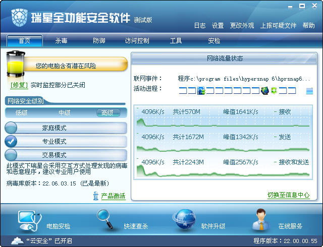 我们先来回顾一下第一阶段的瑞星2010杀毒软件界面。