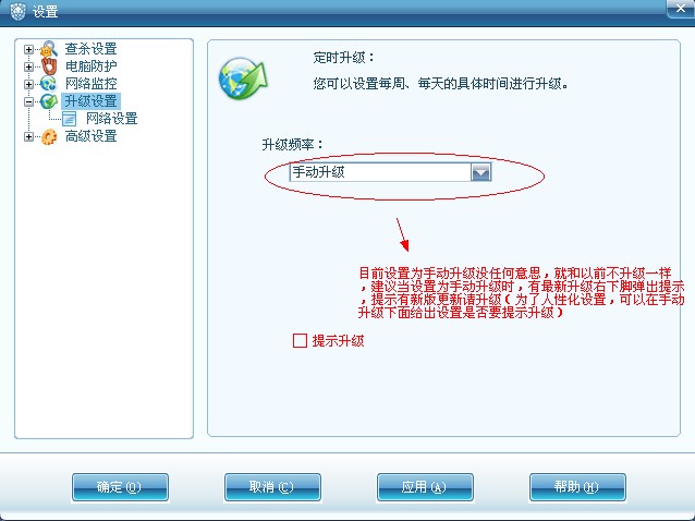建议在设置手动升级下面提供类似是否提示升级的设置,当选种提示升级,当用户设置手动升级,有新版本升级,就在右下脚提示有新版本更新,请升级,如图