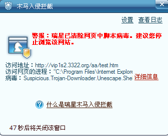 这里既是一个被动又是一个主动的防御过程,对你来说可能是被动的,但对于其它的瑞星用户,它又是